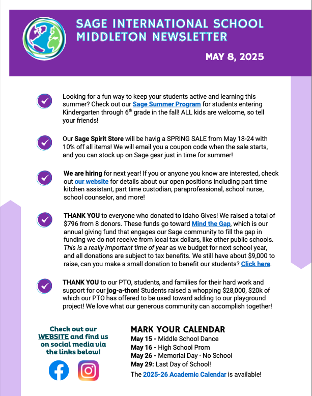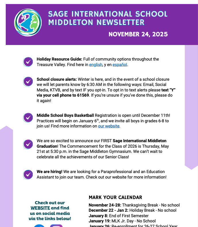 We are so excited to announce our new ESage program that we are hoping to offer starting this fall. ESage stands for “Enrichment at Sage” and is our “after-school” care program offered for students right here on campus in grades K-5. But it’s so much more, it is also open FULL days on Fridays, during school breaks, and all summer! Families are able to completely customize their ESage schedule to meet their needs.